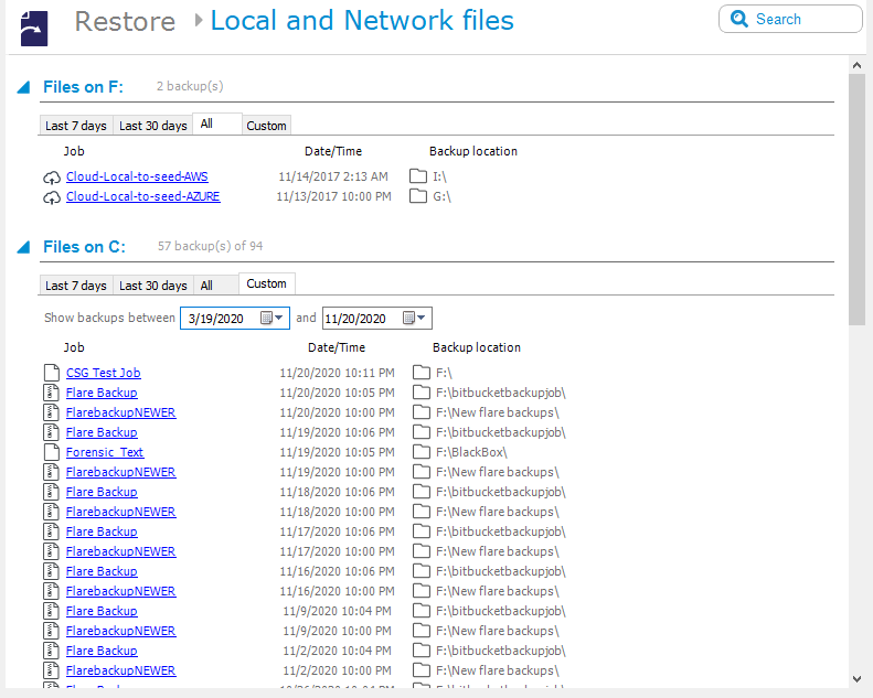 This section explains how to use the Local and Network Files restore option, which is used to restore files, folders and VSS applications that do not have their own restore options. Backups created using System Protection, File Protection, File Archiving and Cloud Backup can restore data using the Local and Network Files option. .